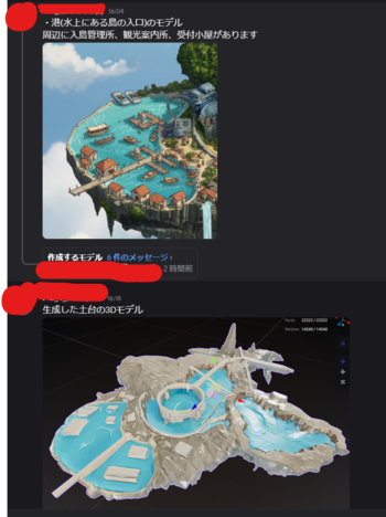 こんにちは!今回はゲームカレッジからちょっと変わった制作風景をお届け!見てください!このファンタジーな「浮遊島」のイラスト!これを、なんとAIの力で、すぐに3Dモデルの土台に変身させました!(下の画像…