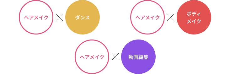 ダンス、ボディメイク、動画編集など、ヘアメイクのスキルアップだけでなく、組み合わせて個性をさらに磨くことができます。