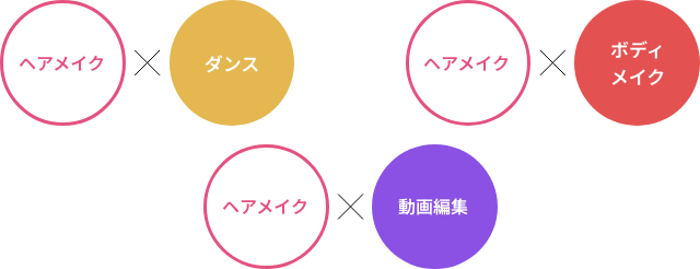ダンス、ボディメイク、動画編集など、ヘアメイクのスキルアップだけでなく、組み合わせて個性をさらに磨くことができます。