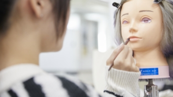 メイクの基礎から応用までを学ぶ最も大切な授業です。1年生の前期で基礎知識に加え、フルメイクができるまでの技術を習得します。後期ではテーマに沿ったフルメイクができる技術を磨きます。
