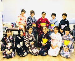 毎年、和装ヘアメイクに合わせて浴衣着付の実習をしています