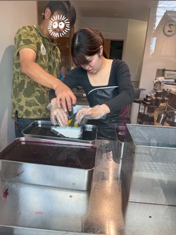まず1つ目の目的の、風呂敷の絞り染め体験をしてきました