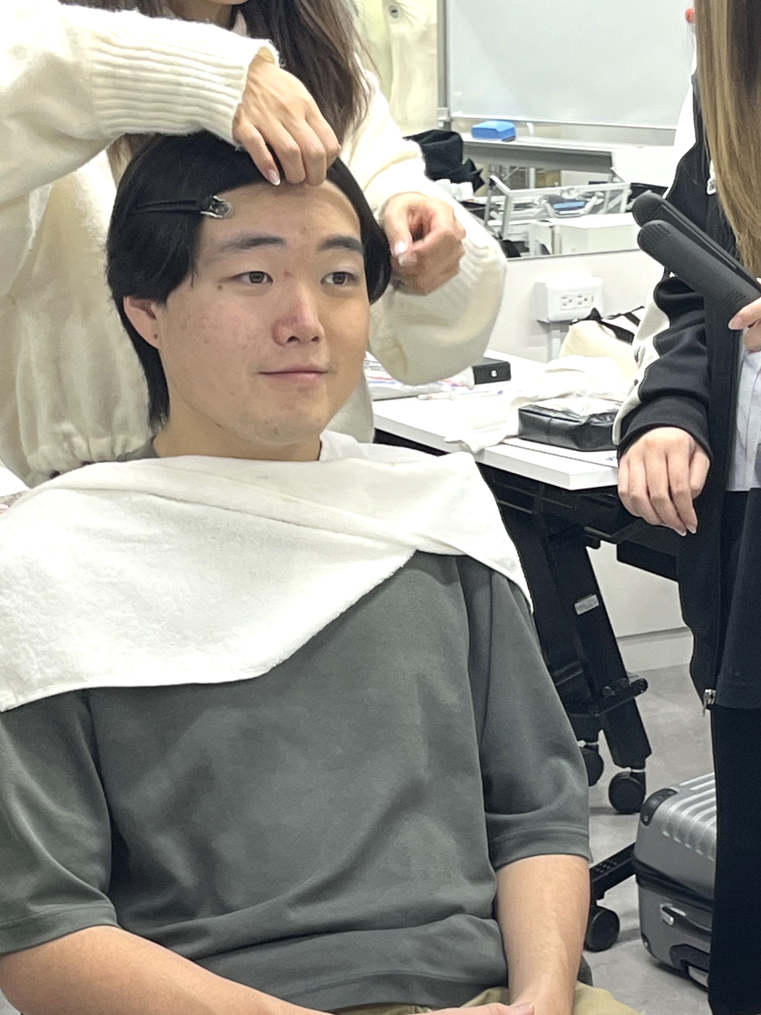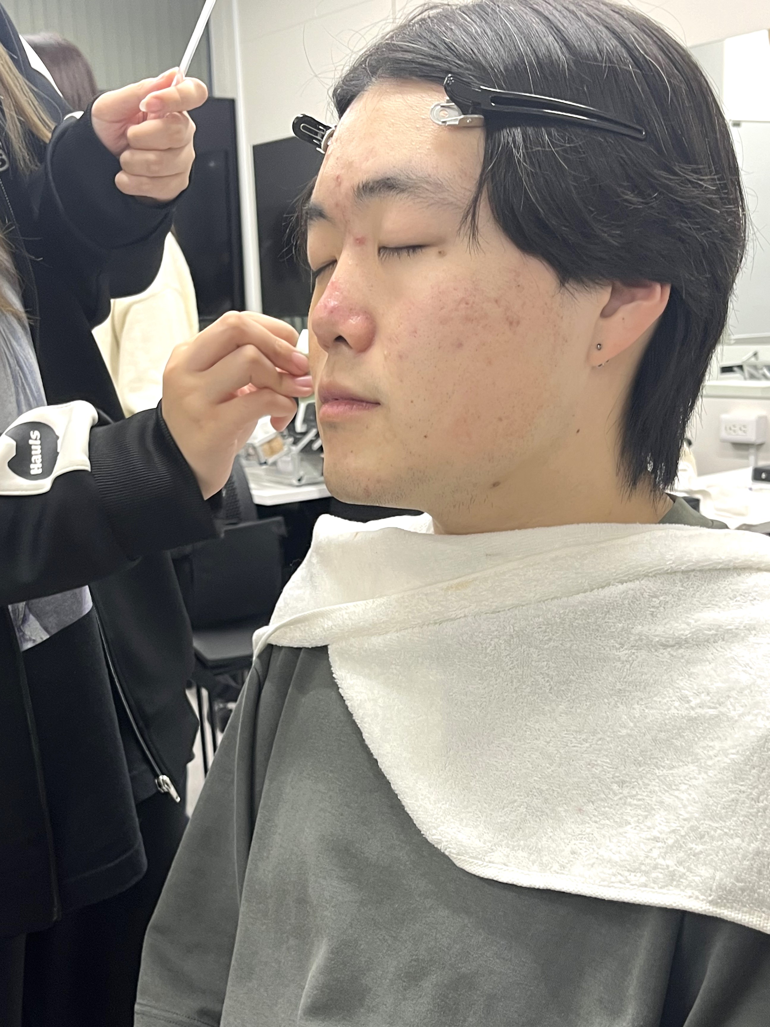 【授業紹介】実習に向けてメンズヘアメイクを練習中!