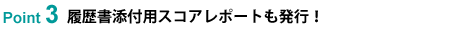 受験終了後、スコアがすぐ表示されます。スコア右下の履歴書添付用ボタンの「日本語」「English」のいずれかをクリックすると、履歴書添付用スコアが表示されます。プリントアウトすれば、そのまま履歴書に添付可能。転職活動時に役立ちます。