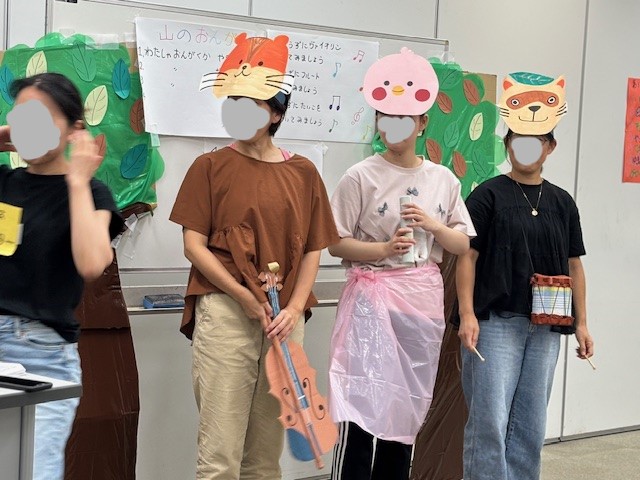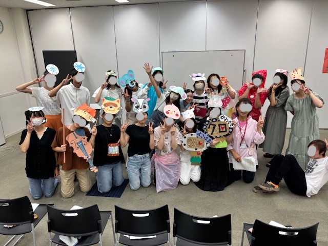 登場キャラクターのお面をつくっています、笑顔のりすさんがとってもかわいいですね