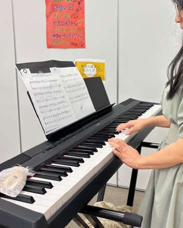 歌の伴奏や劇中の効果音でピアノの音が響きます