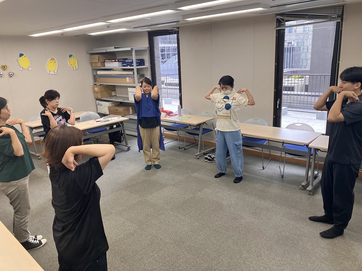 みんなでしっかり体をほぐして、保育実習の準備万端です
