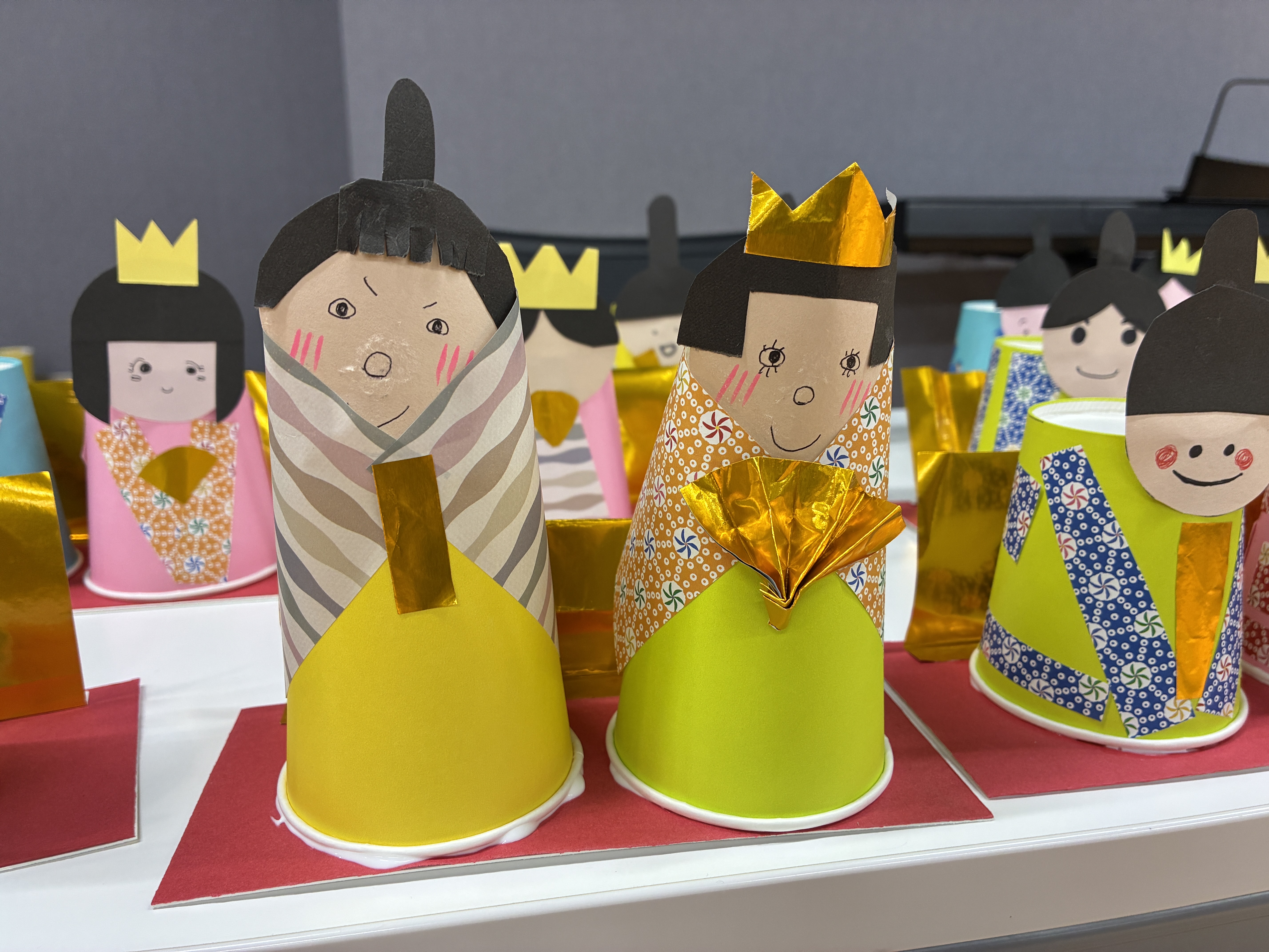 紙コップと色紙で簡単に作れるひな人形を制作しました。