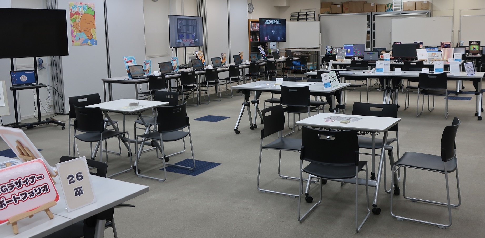 横浜校ゲームカレッジでは 2月11日・12日にこの1年間で制作した作品を展示する『修了展』を開催しました CGデザイナー専攻・プランナー専攻・プログラマー専攻それぞれの作品展示だけでなく チームで制作したオリジナルゲームを遊んで頂けるよう試遊コーナーも用意しました 当日は学内だけでなく、保護者や卒業生・企業も来場し、楽しんで頂きました♪