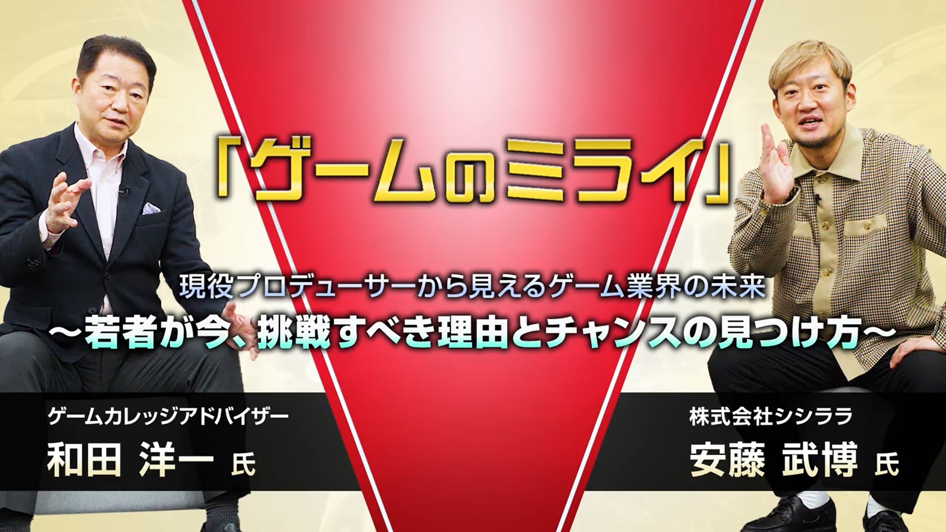 両氏が「ゲーム業界の未来」をテーマに,「今、若者がゲーム業界で挑戦すべき理由」という話題を介しつつ,「チャンスの見つけ方」について語ります!