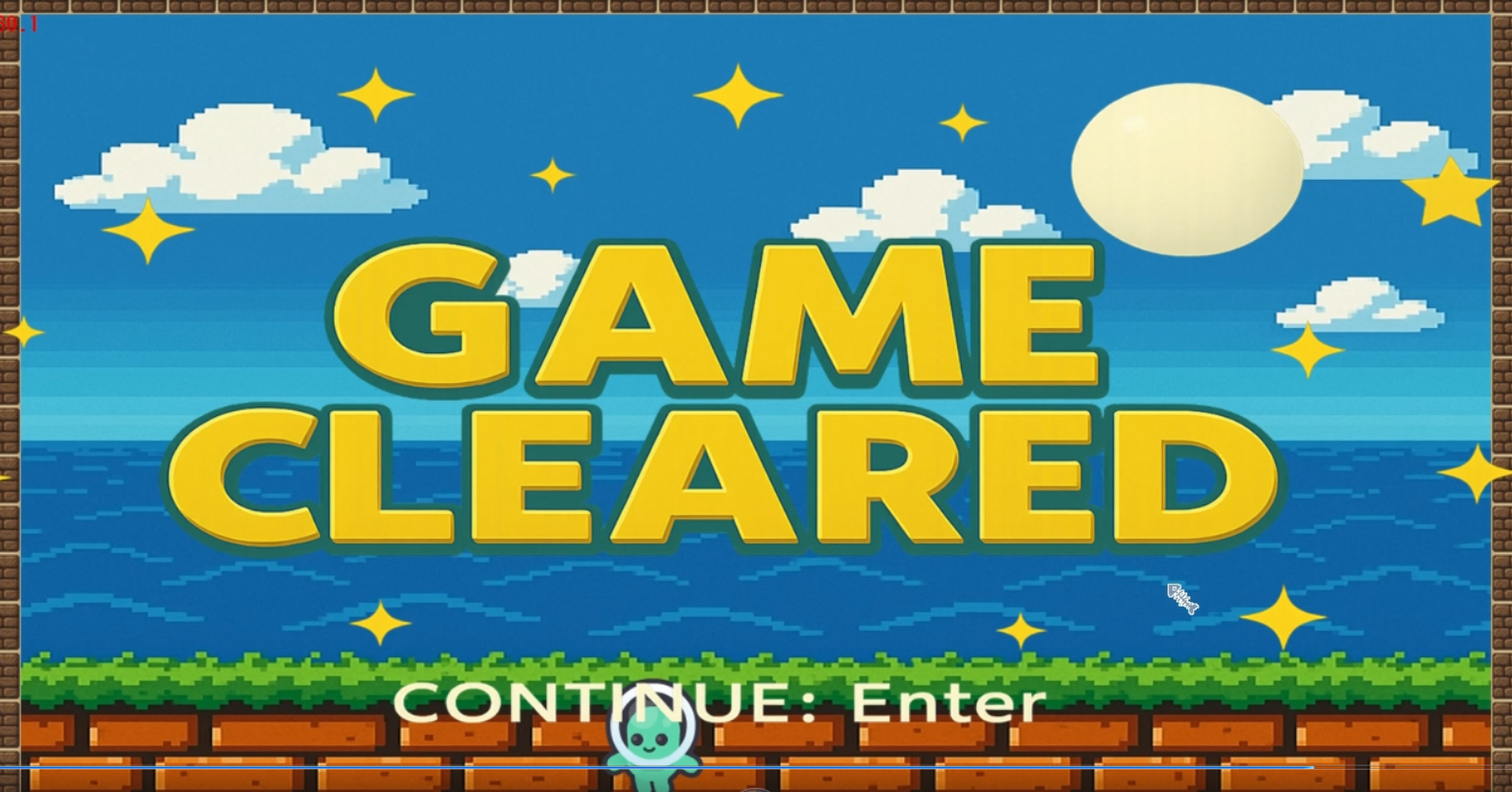 クリア画面の「GAME CLEARED」も達成感がしっかり味わえる演出で、ゲームとしての“締まり”も抜群です。