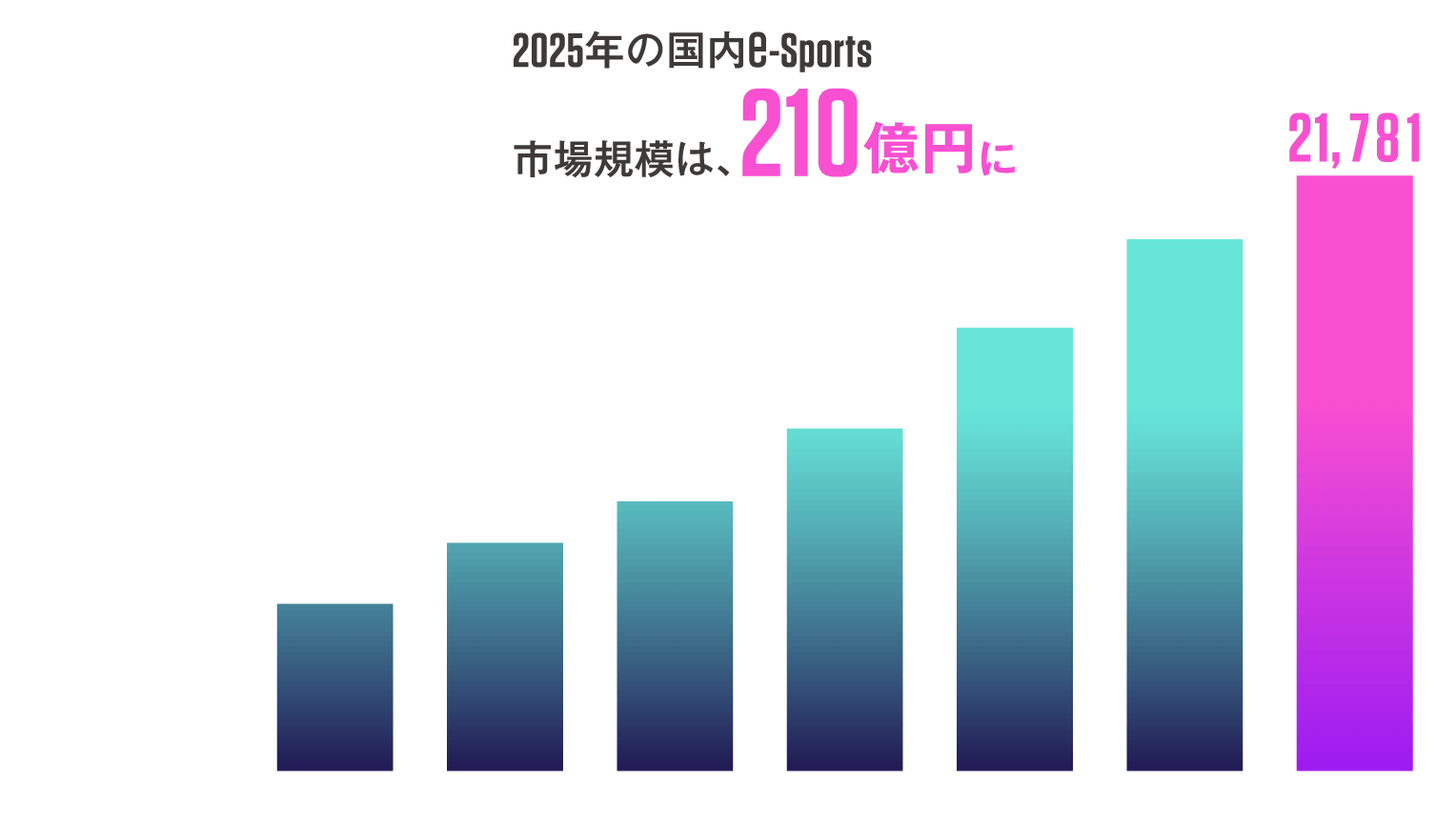 - 「エレクトロニック・スポーツ」の略。今はゲームと言えば『遊び』だけの時代ではありません。国体競技やアジアオリンピック競技としてe-Sportsが採用され、日本でもe-Sports元年と言われた2018年を皮切りに、さらなる市場拡大が予想されています。