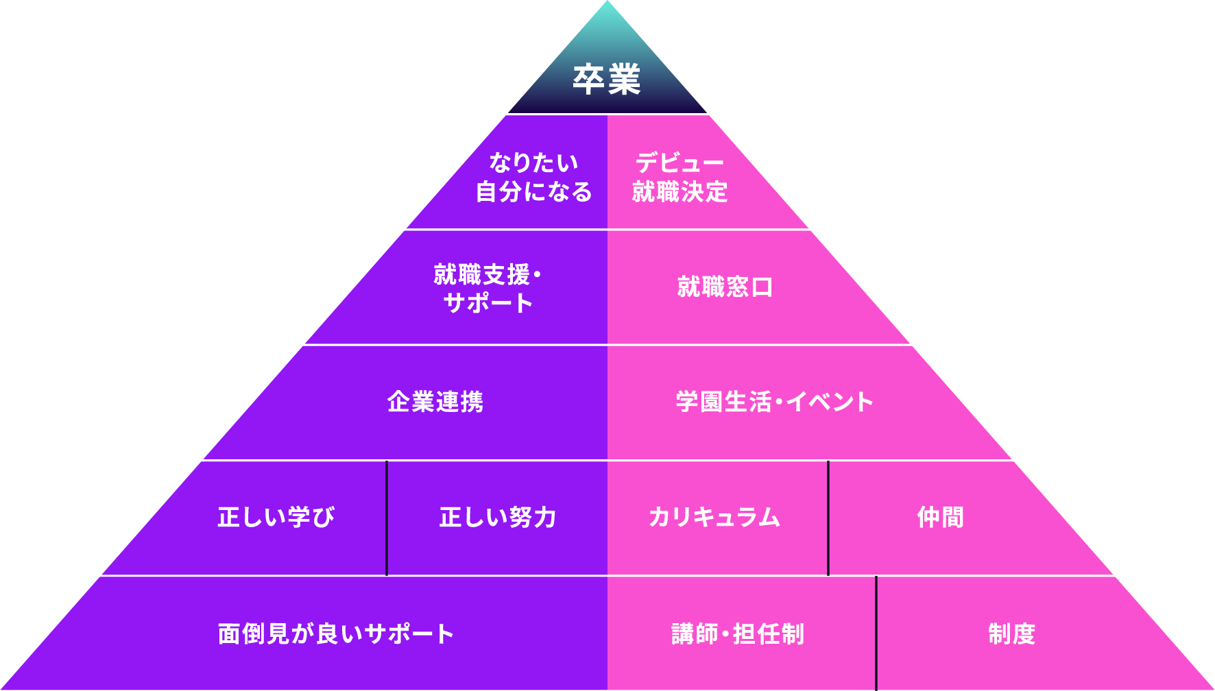 なりたい自分になれる専門校”をコンセプトとして掲げる私たちにとって、就職は大きな意味を持ちます。学生には、専門的な知識や技術だけでなく人間性も求められることを伝え、人間性の成長を含めたサポートを行っております。