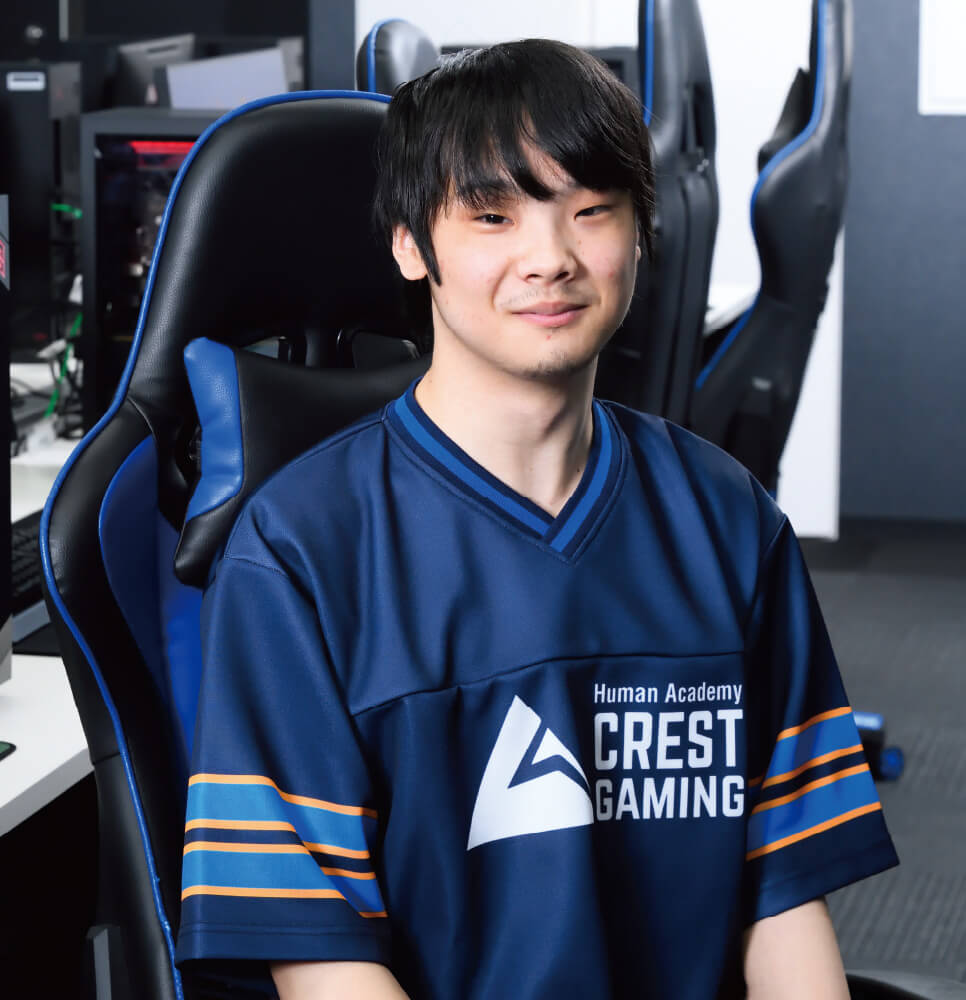 - 在学中に参加した合同トライアウトで結果を残し、『Human Academy CREST GAMING』からスカウトを受けてチームの下部組織へ。現在はリザーブ選手としてプロチームの活動に参加し、 スキル向上を目指す。