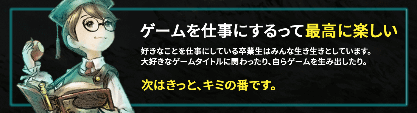 ゲーム業界と一緒に学生を育てることで、就職だけでなく、就職してからの活躍を目指しています。