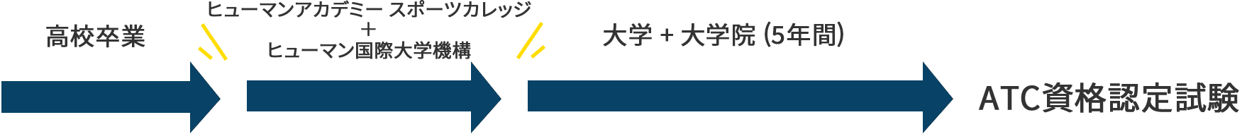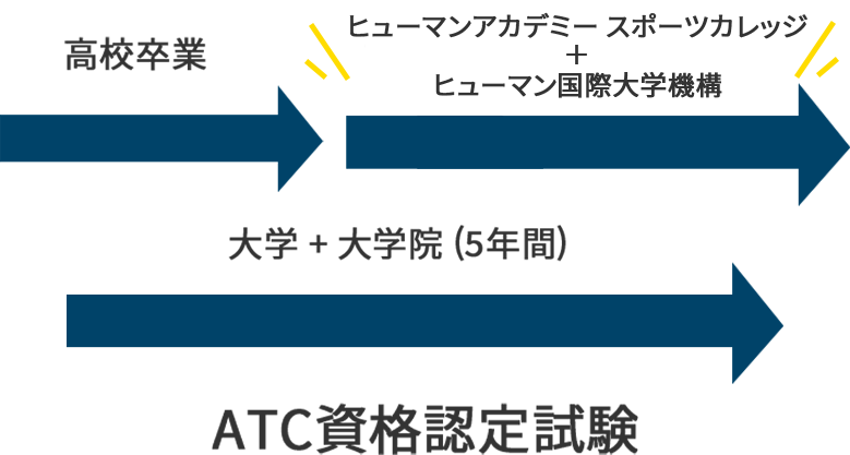 スポーツカレッジ + ヒューマン国際大学機構 併修 →大学(3年間)→大学院(2年間)=合計6年間