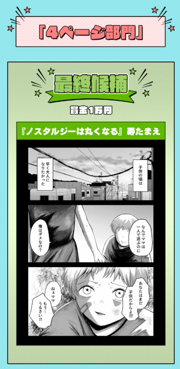 7月期サンデーうぇぶり新人賞4ページ部門にて「最終候補」を受賞!!