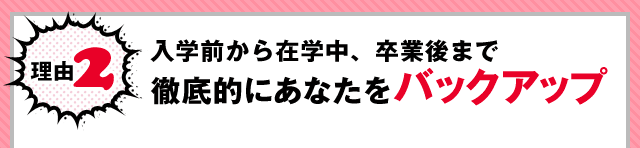 卒業後も研究生として相談や講義を受けられるので、担当付きや関連企業への就職を積極的かつ親身にバックアップします。