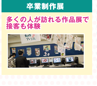 少人数クラスで、講師は現役で活躍しているプロばかり。基礎から応用までしっかり、学生一人ひとりに合った指導をしてくれるので安心です!また、業界との太いパイプを活かした特別講義やインターンシップ、アルバイト紹介なども魅力!!それだけでなく、一般就職のサポートも充実していたり、他カレッジ・専攻の授業も同時に履修できる「クロスオーバーカリキュラム」があったり。学生のことを考えたシステムを用意しています。
