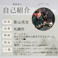 こんにちは!ヒューマンアカデミー札幌校です!本日の講師紹介は、e-Sportsカレッジ担任の影山大樹(かげやまひろき)先生です✨影山先生は、eスポーツの授業を担当しており、専門はLeagueofLeg…